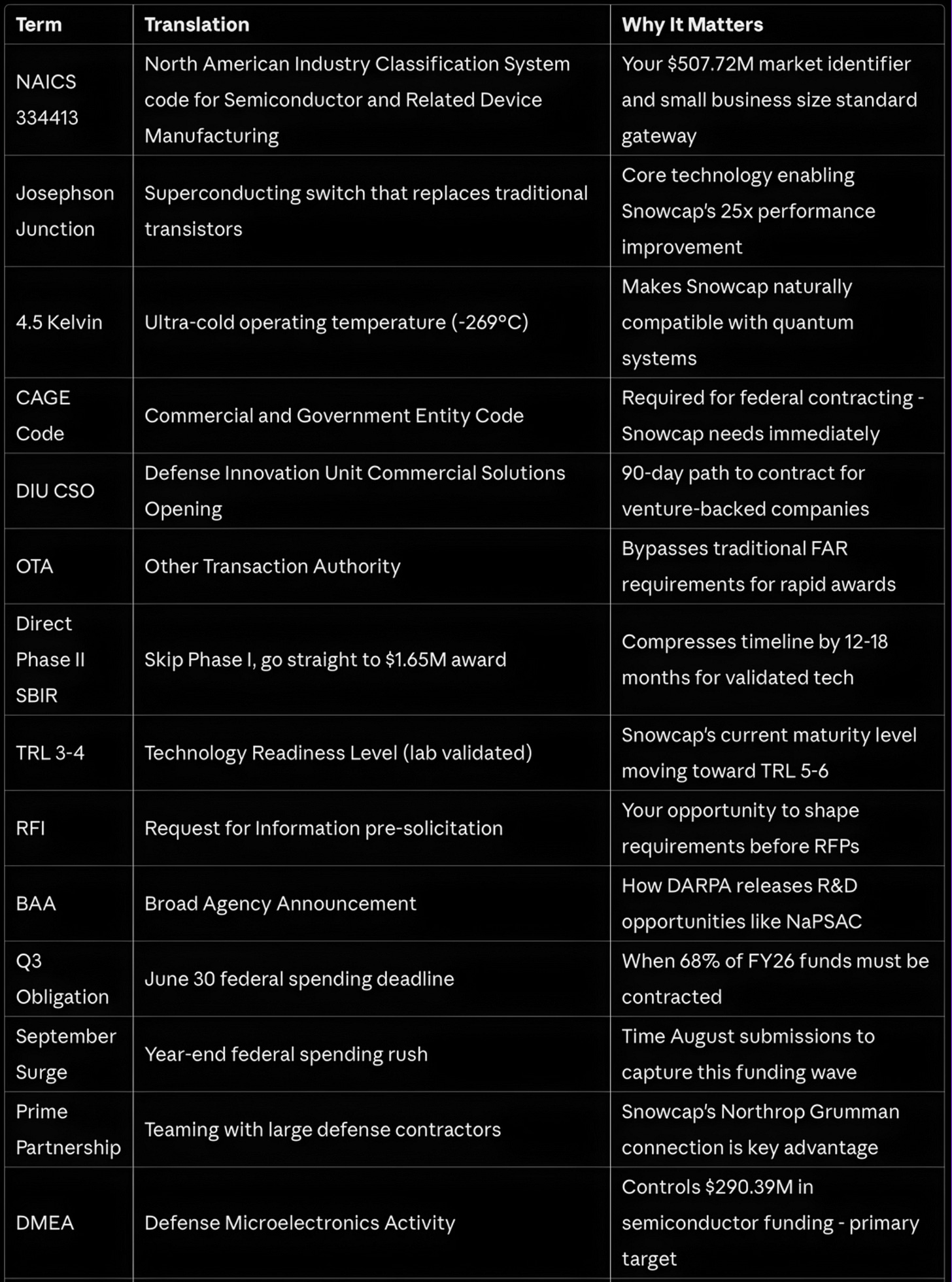 Why This Matters: The FY26 budget confirms dedicated, non-incremental funding to solve the precise computational deficiencies that Snowcapâs superconducting architecture addresses. The explicit budget language provides an evidence-backed roadmap, establishing that Snowcapâs solution is a strategic imperative. This guarantees specific R&D streams totaling over $19.99 million in the immediate future.